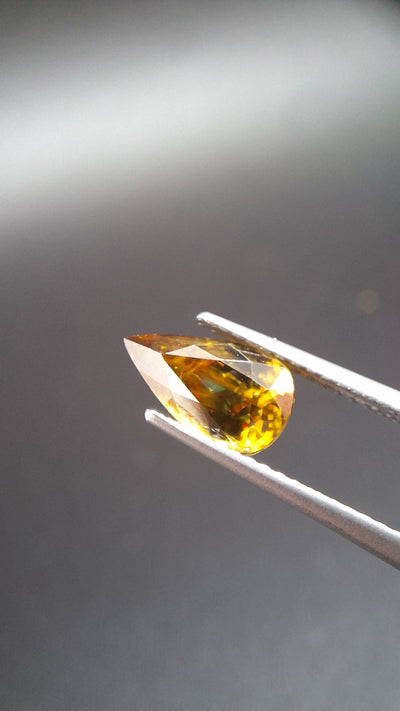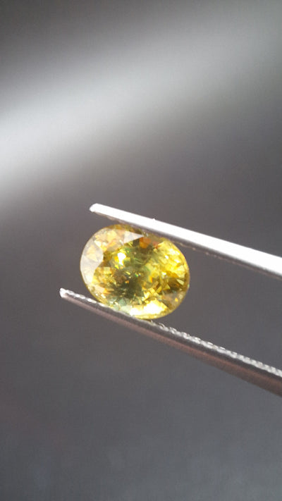 Discover the mesmerizing beauty of sphene, a dazzling gemstone that captures the eye and sparks the imagination. Composed of calcium titanium oxide, this mineral emits iridescent flashes, blending golden, green, and sometimes red hues. Each sphene is a masterpiece of nature, expertly cut to unveil its unique splendor. Whether set in a sparkling ring or suspended from an elegant necklace, sphene adds a touch of mystery and brilliance to any ensemble. Immerse yourself in the timeless magic of sphene, and treat yourself to a remarkable piece that will illuminate your style with unmatched radiance.